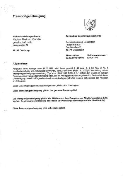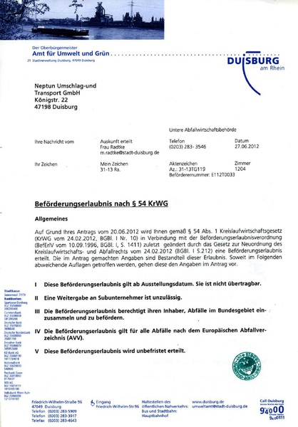 Beförderungserlaubnis nach KrWG § 54